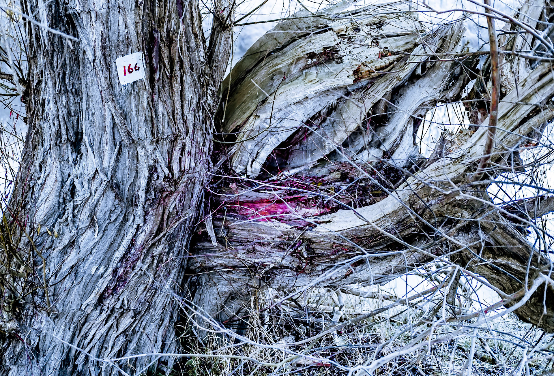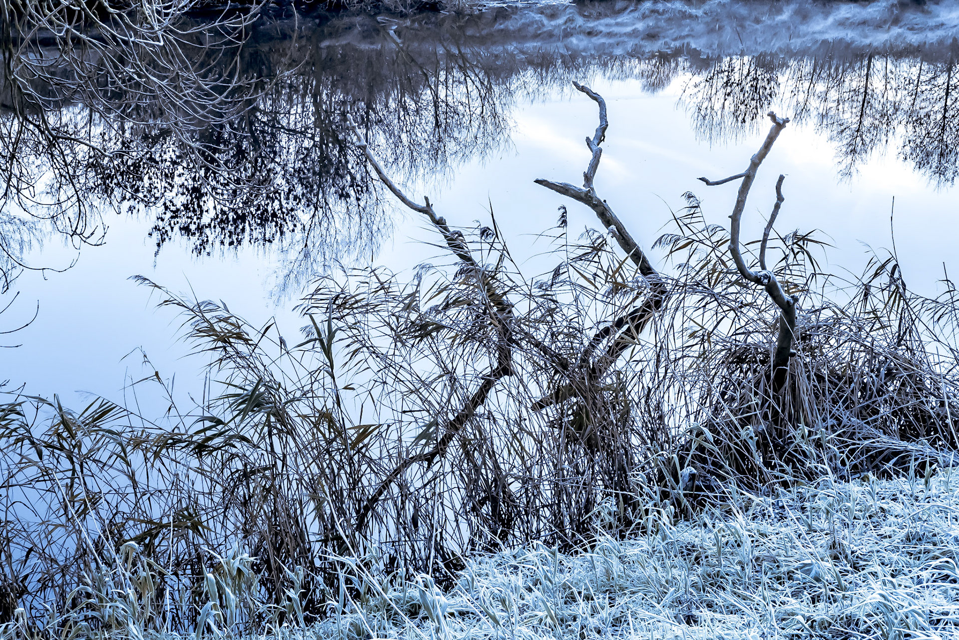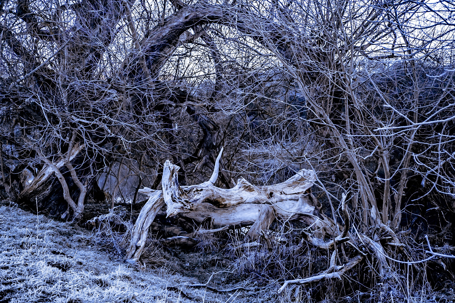 Before the sun has risen over the Cleveland Hills, I took my Fuji XP2 to take images of the riverbank trees along The River Tees. With a deep frost and a still mist coming off the water the trees gave a feeling of desperation and abuse.