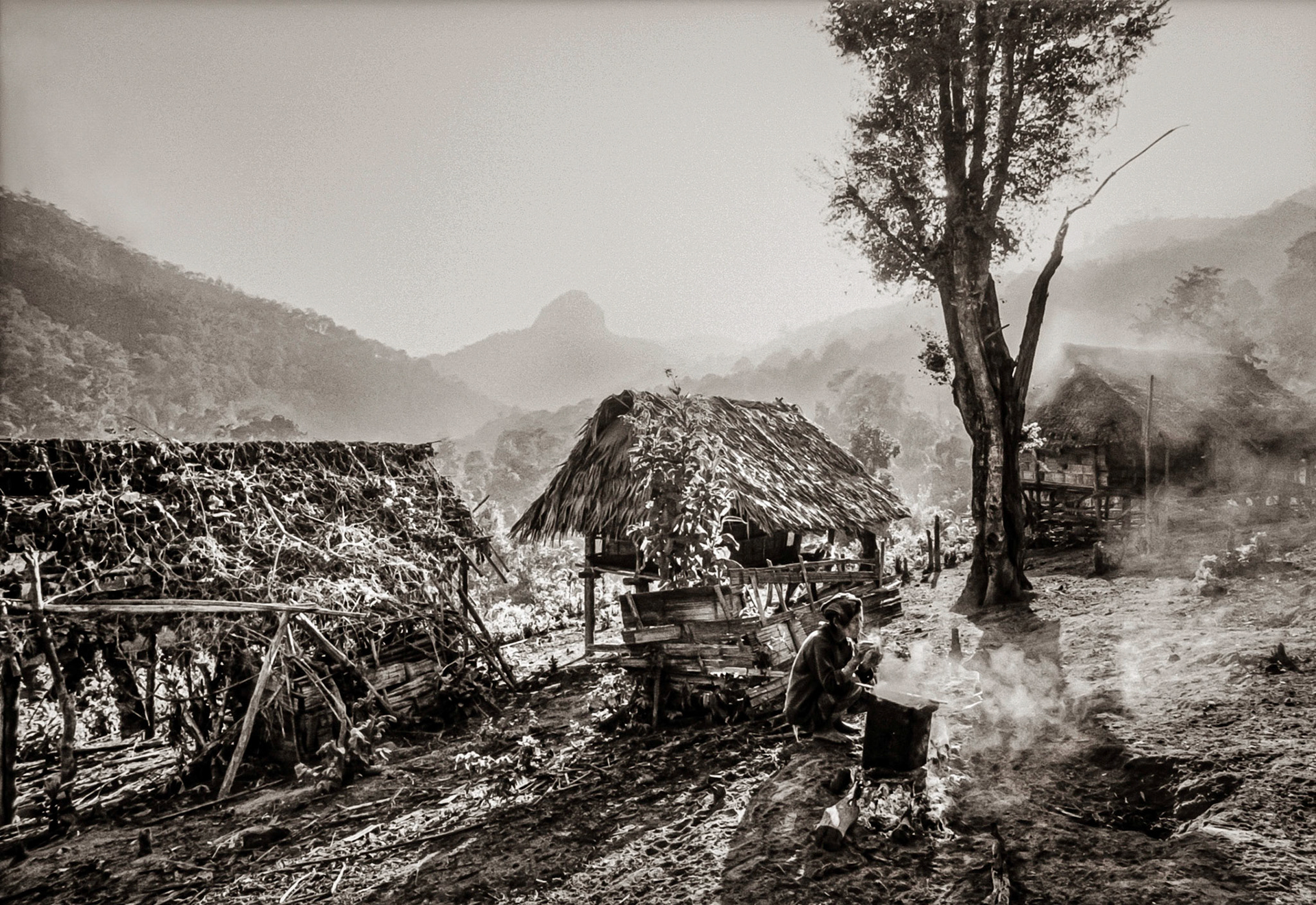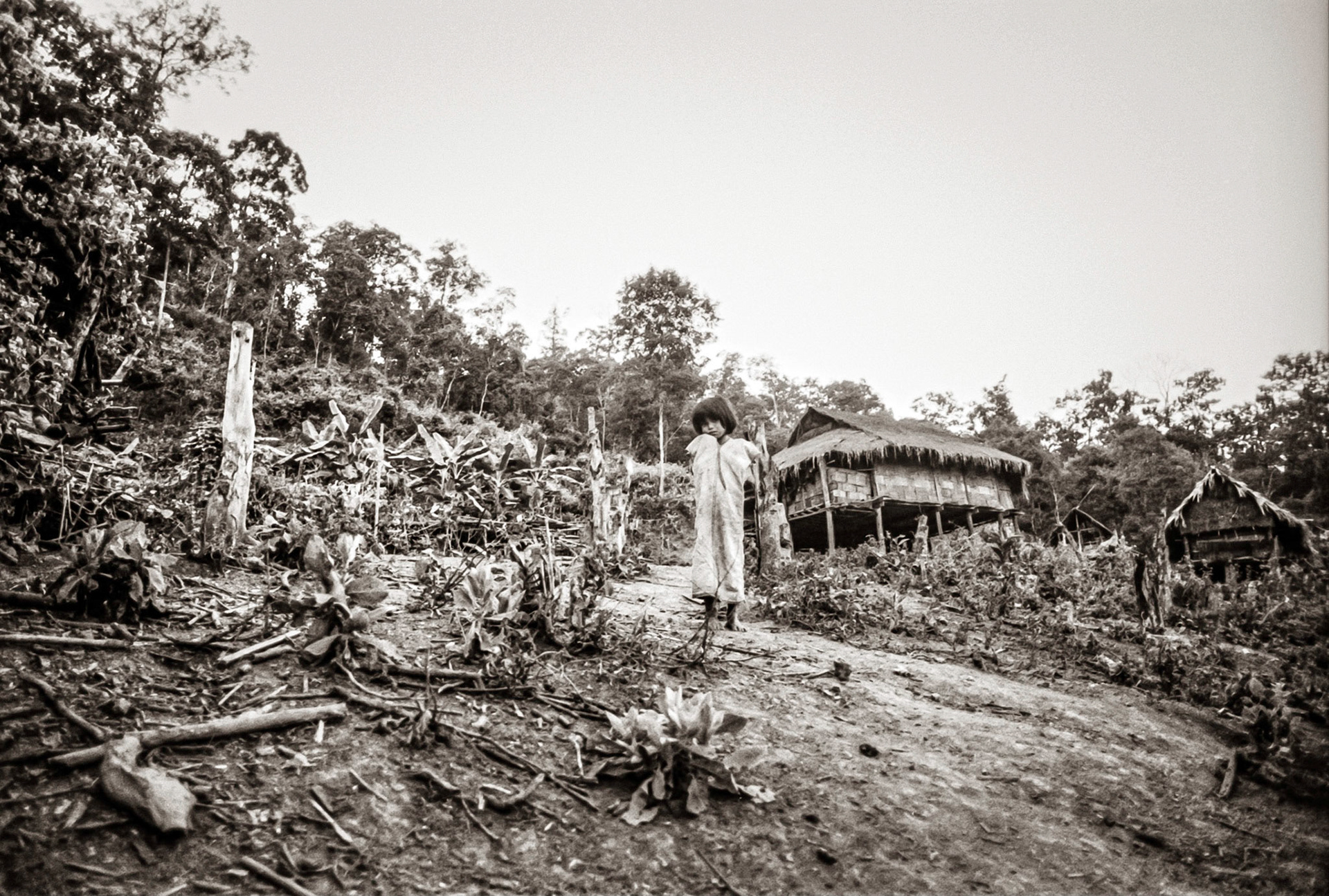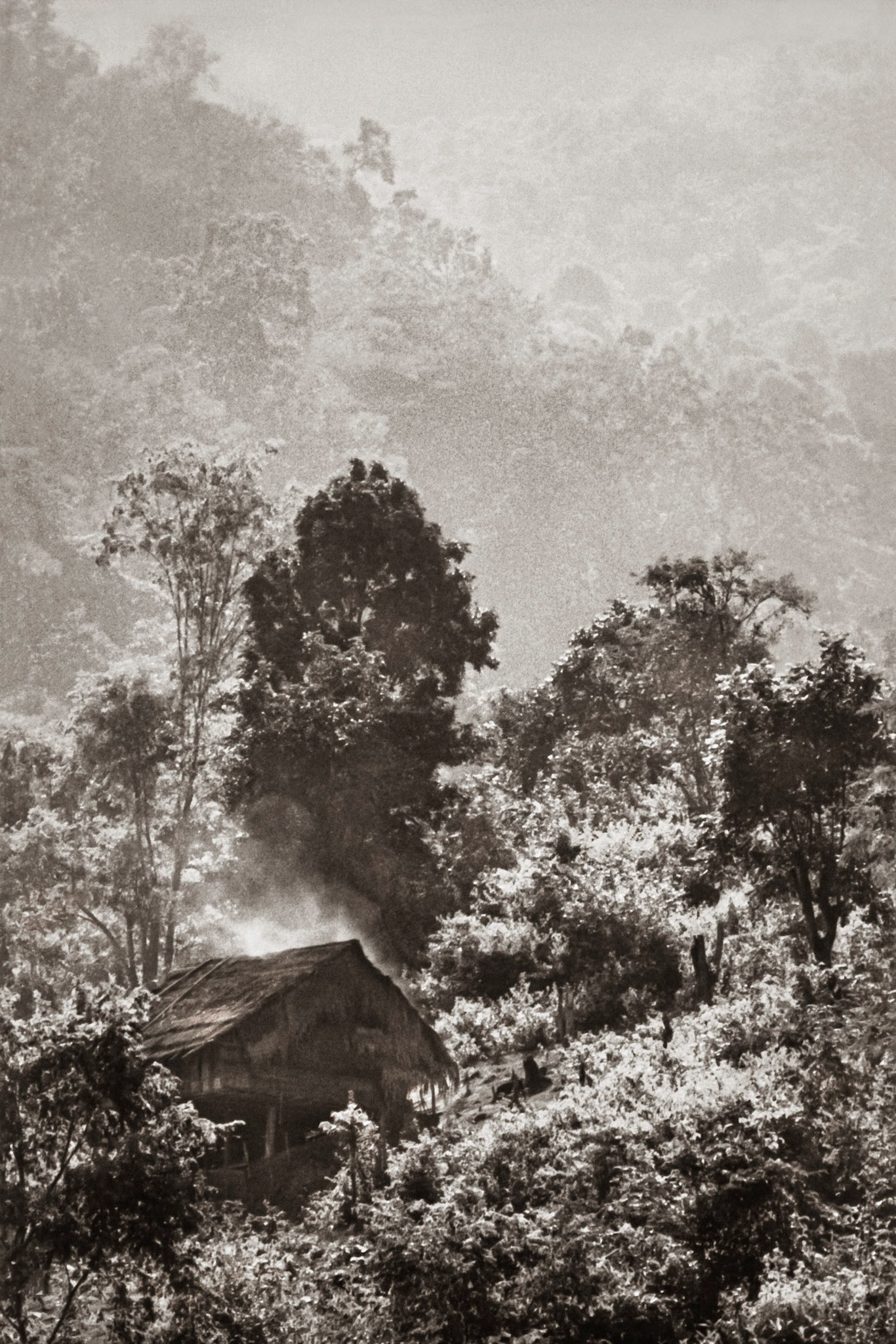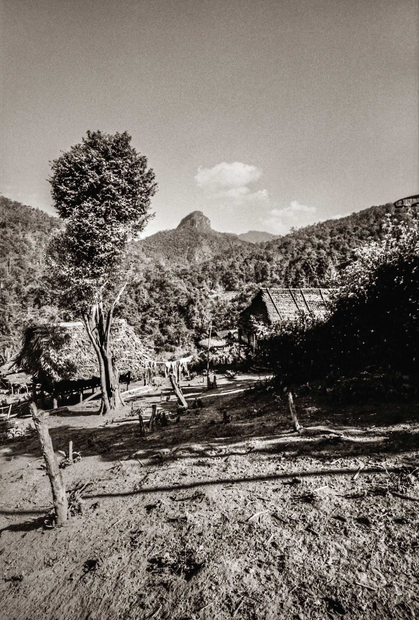 A selection of black & white photographs taken in 1990 of a trip to a Northern Thailand area called the Golden Triangle. Taking a day to walk through the forest overland by foot with my guide, Sunny, I photographed various temples on route before we arrived at our destination in the hills and forest, staying three nights with the 'Hill Tribe' people.
