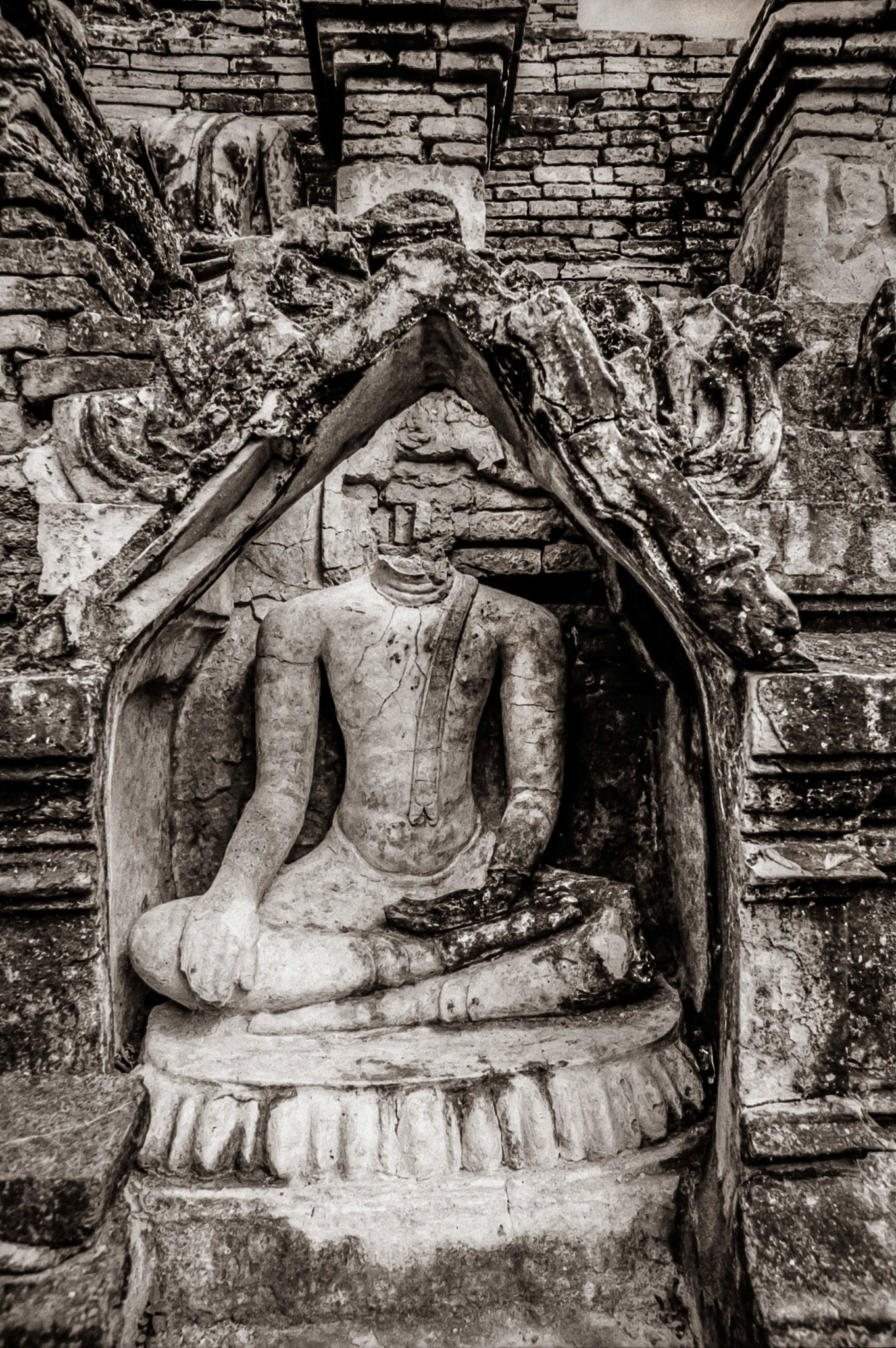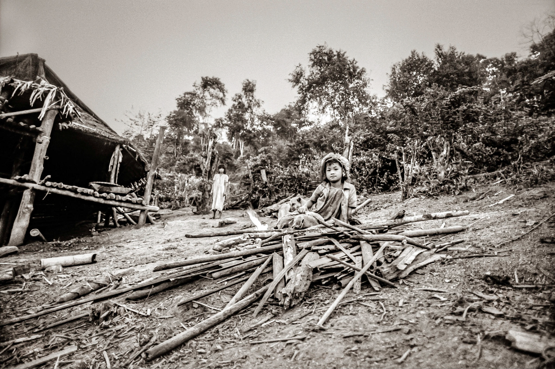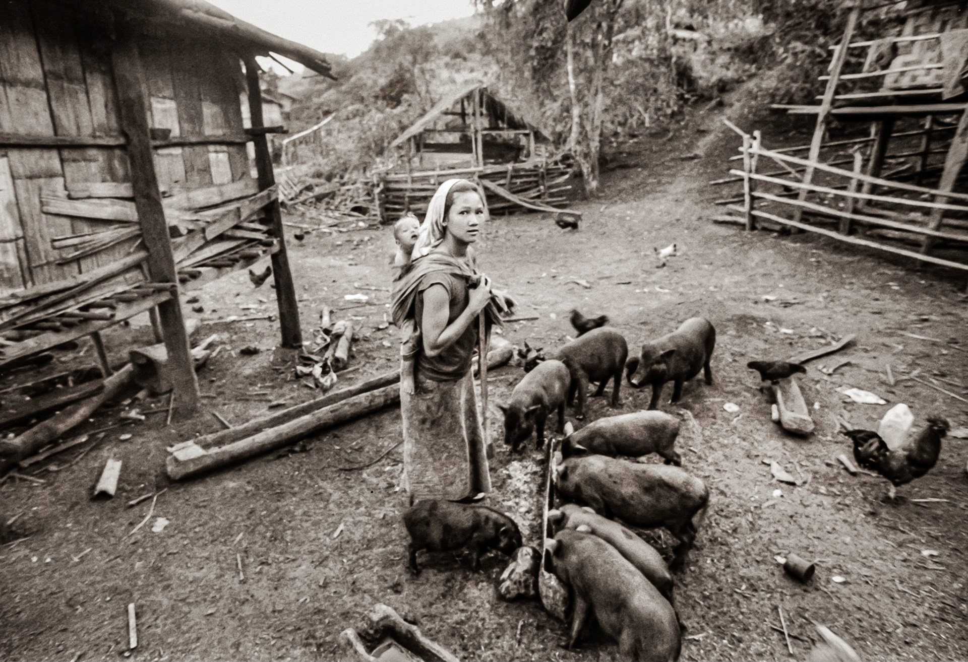 A selection of black & white photographs taken in 1990 of a trip to a Northern Thailand area called the Golden Triangle. Taking a day to walk through the forest overland by foot with my guide, Sunny, I photographed various temples on route before we arrived at our destination in the hills and forest, staying three nights with the 'Hill Tribe' people.