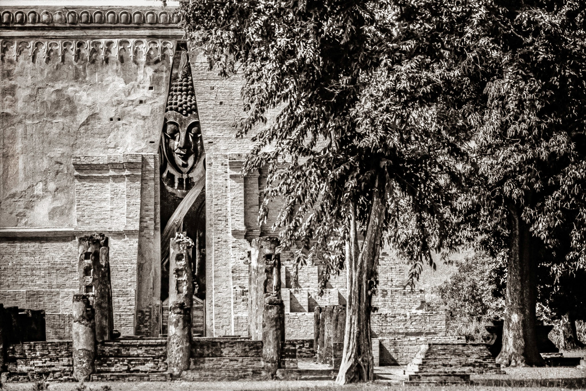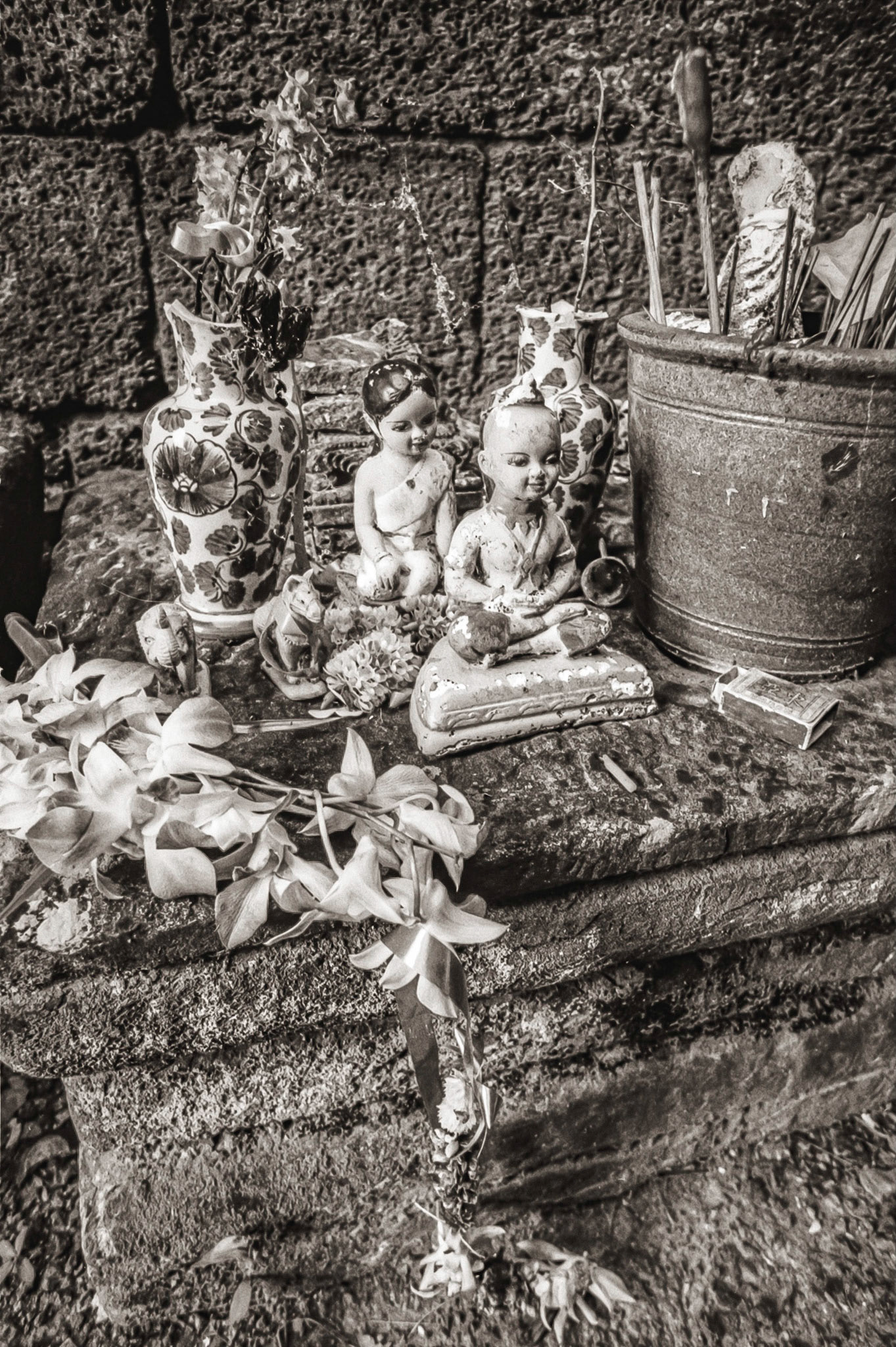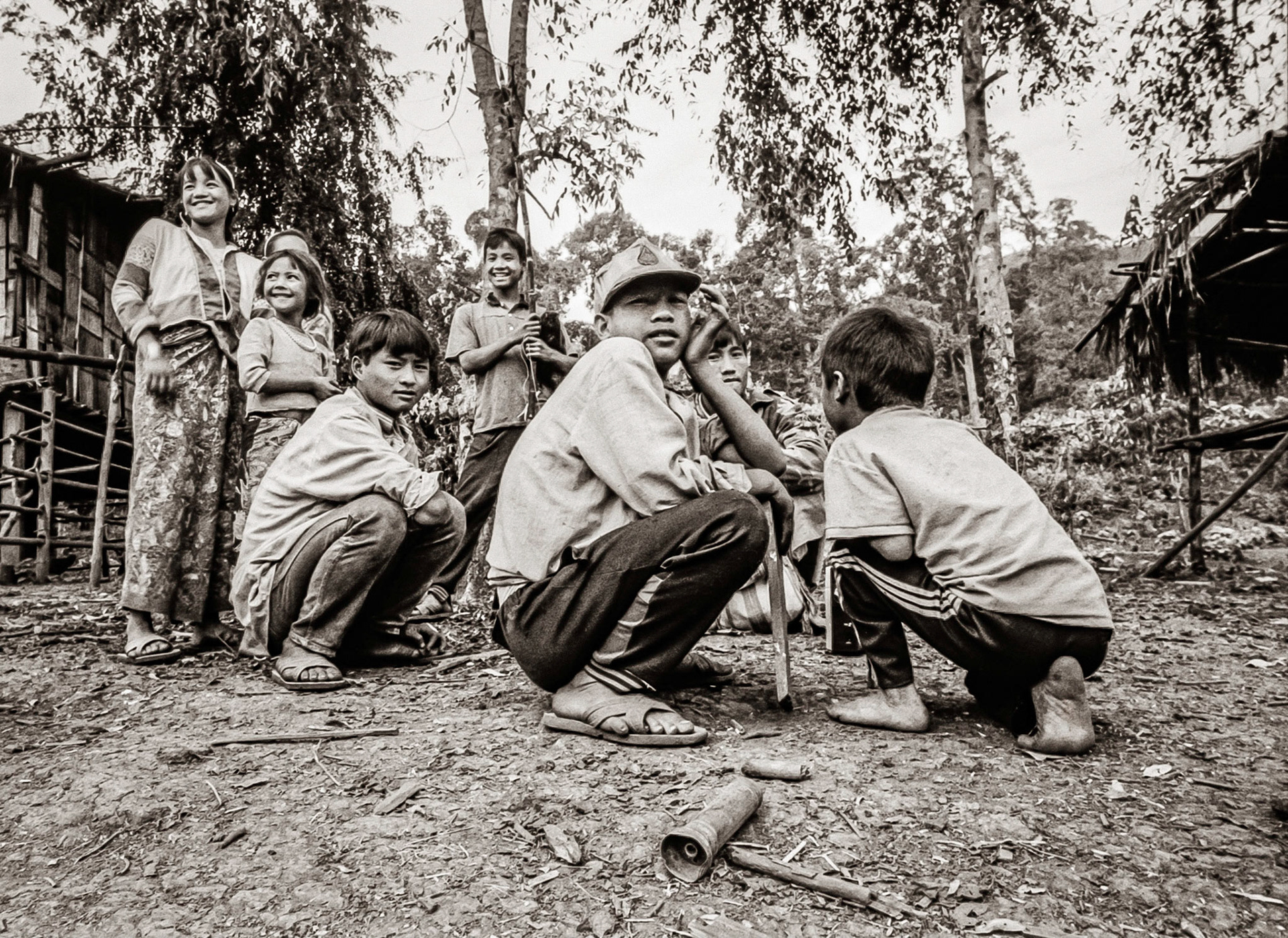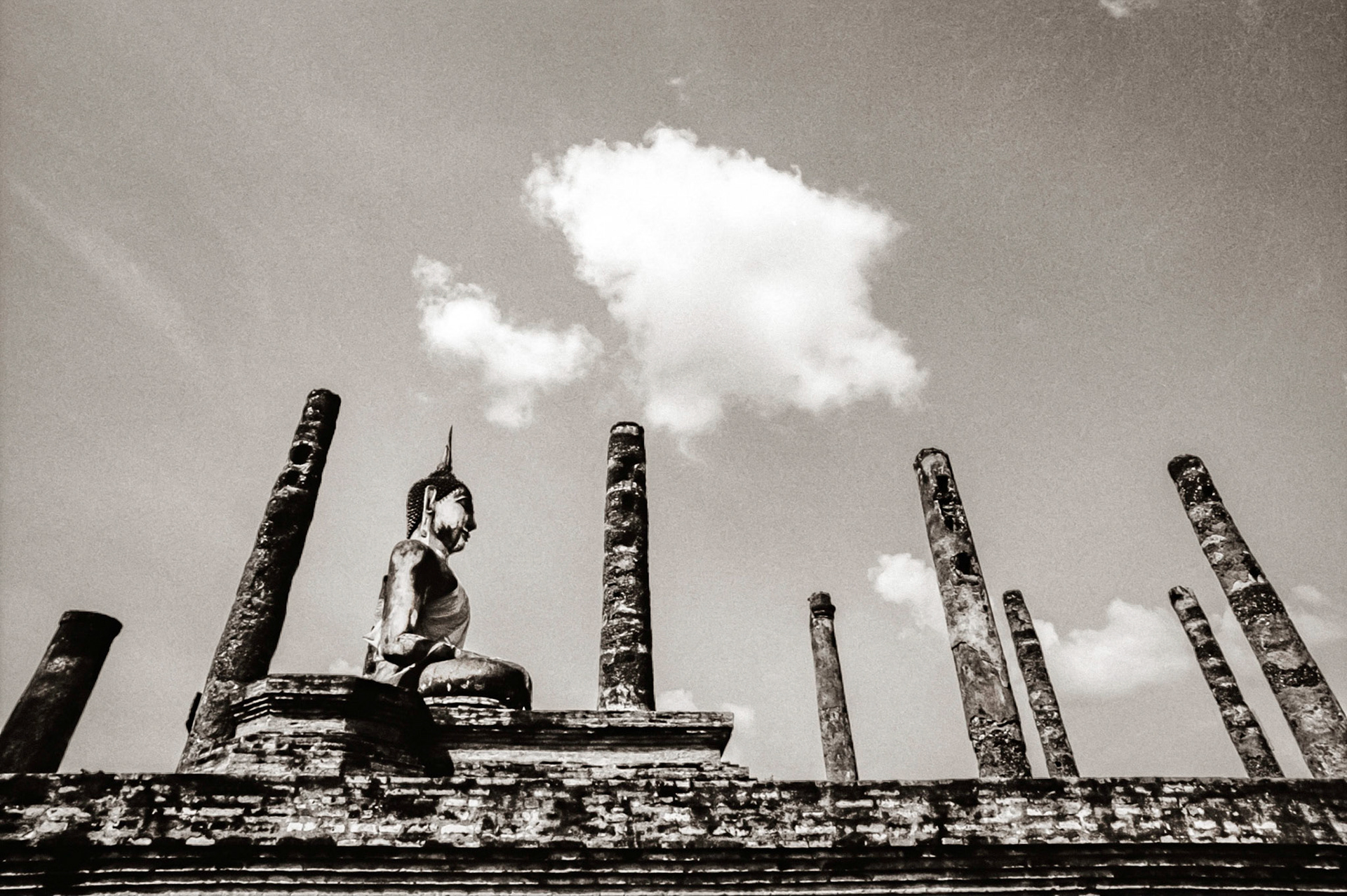 A selection of black & white photographs taken in 1990 of a trip to a Northern Thailand area called the Golden Triangle. Taking a day to walk through the forest overland by foot with my guide, Sunny, I photographed various temples on route before we arrived at our destination in the hills and forest, staying three nights with the 'Hill Tribe' people.