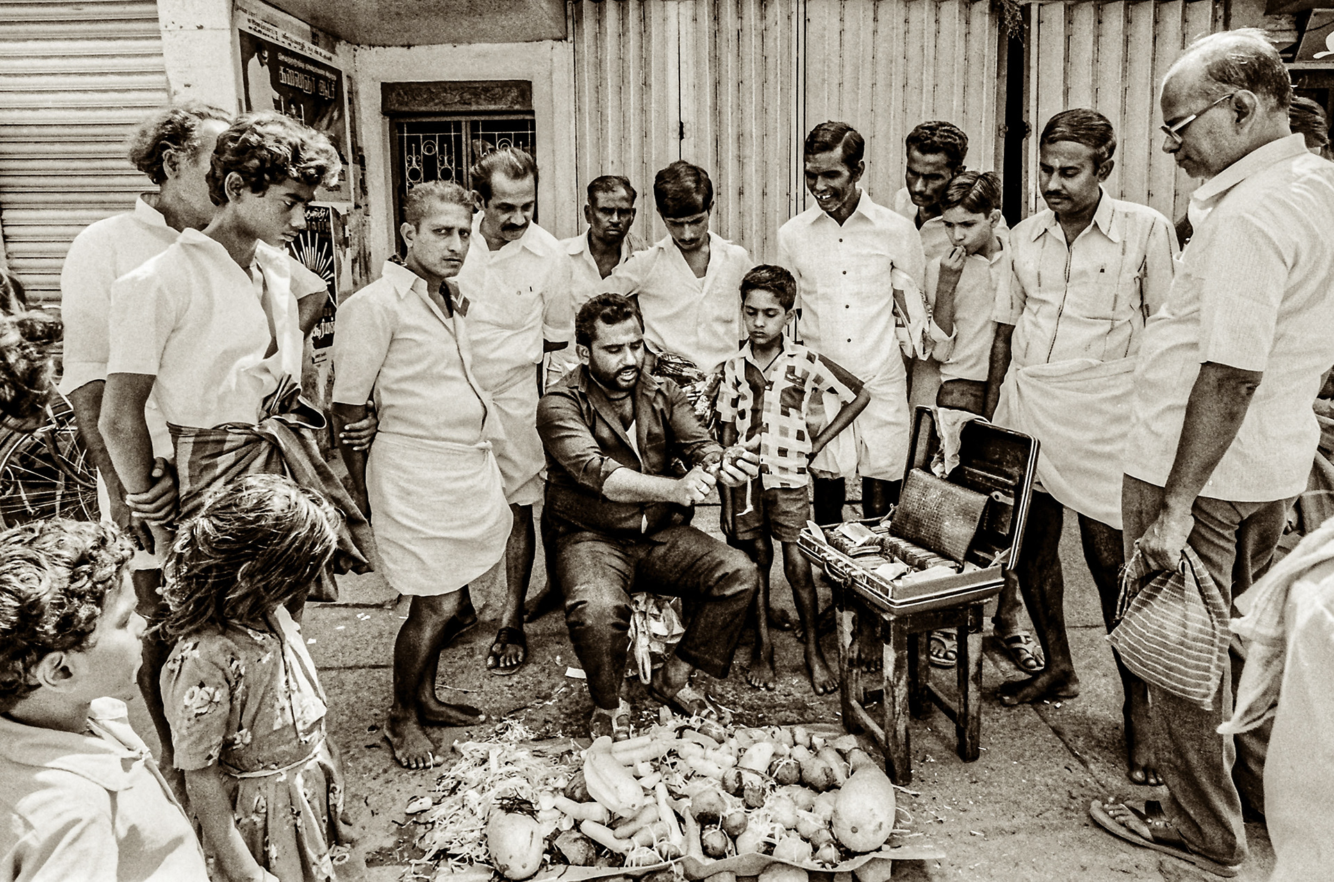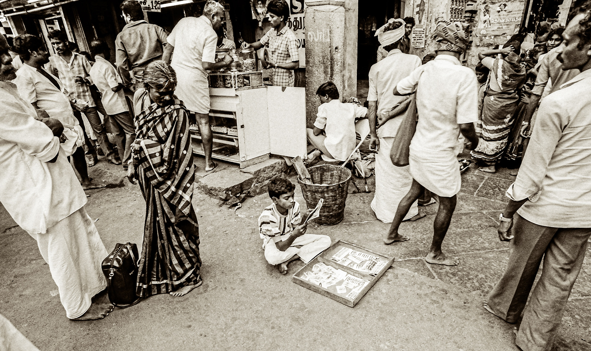 Travelling by bus, train, and boat through India from Bombay (now known as Mumbai) to Madras in the South, to Jaipur, Rajasthan, in the North. At the time, I used an FM2 Nikon camera, shooting black-and-white film. Here is a selection of 'Street Photography' style photographs, capturing the life and look of India all those years ago.