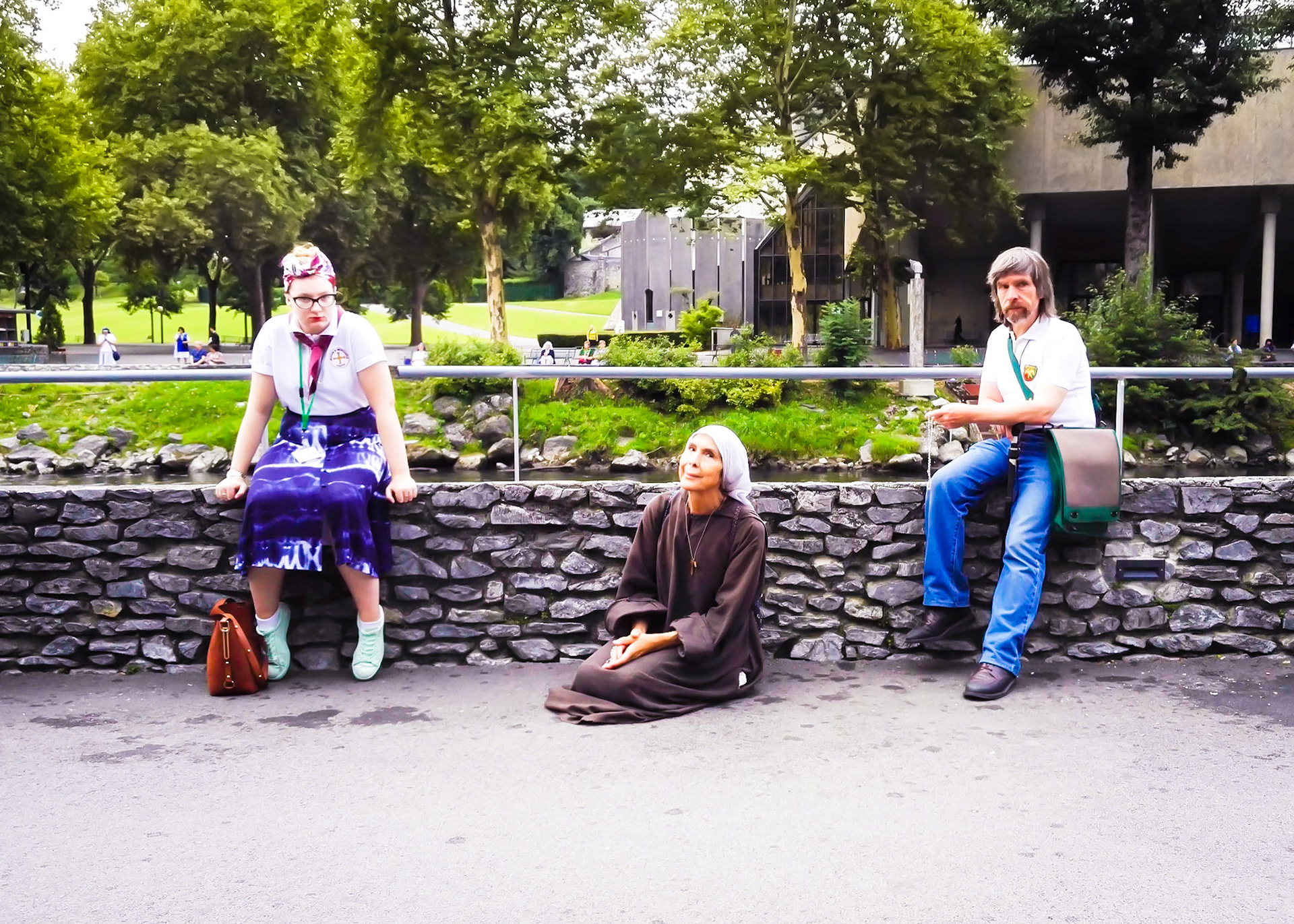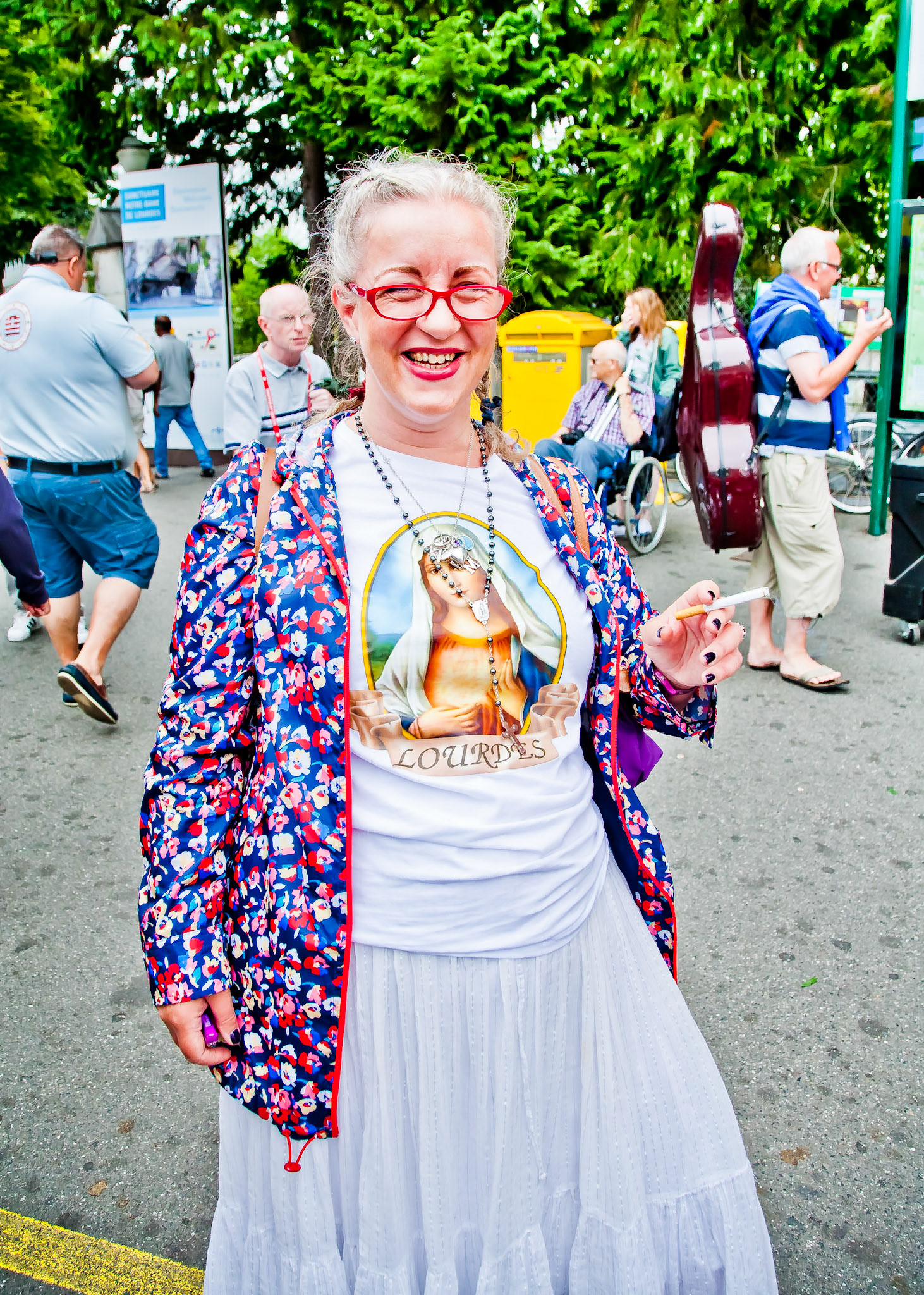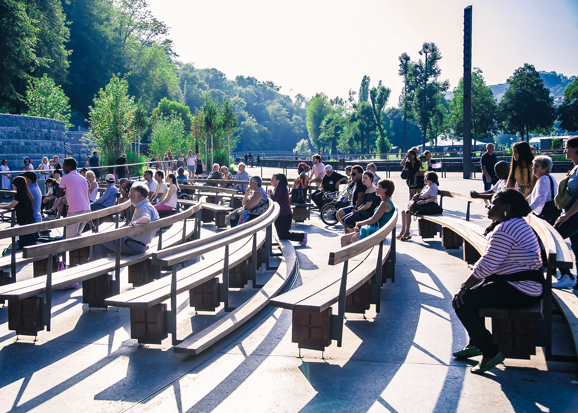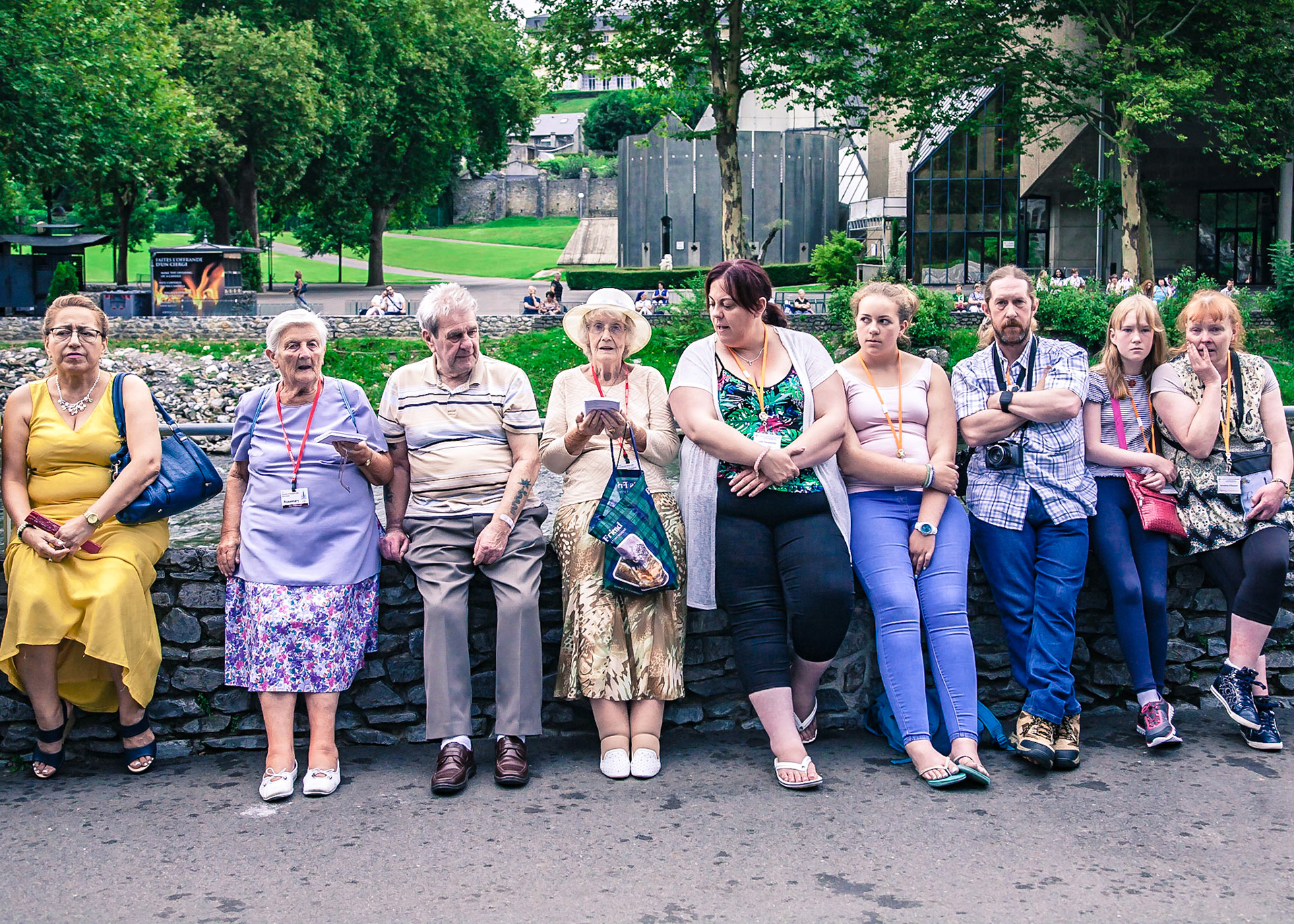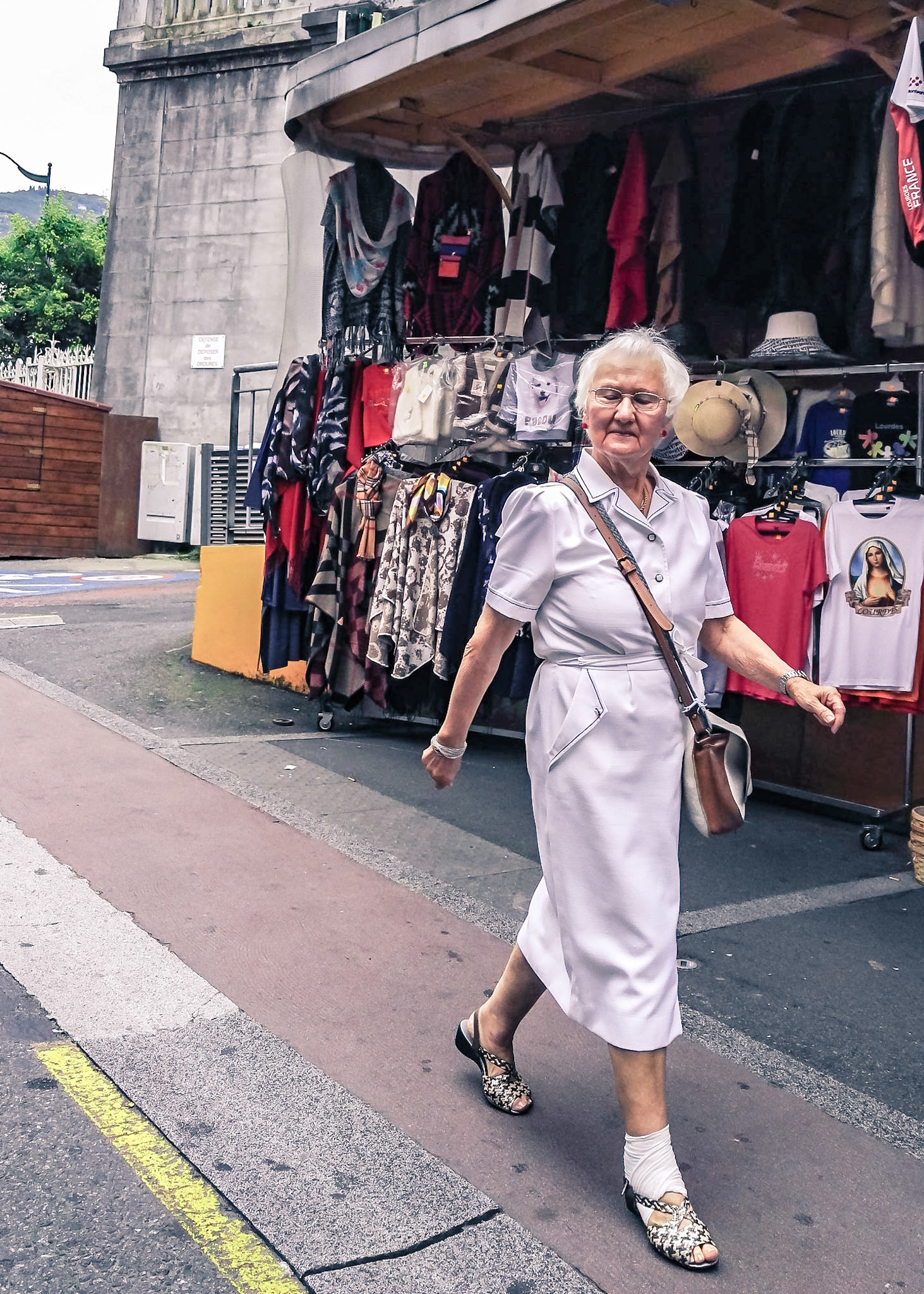 A candid view of pilgrims at Lourdes, their devotion to the Catholic faith. The sick come from all over the world in hope of a cure. The atmosphere around the town and in the Grotto of Massabielle (Grotto of the Apparitions) is peaceful and where in 1858, the Virgin Mary is said to have appeared to a local woman. In the grotto, pilgrims can drink or bathe in water flowing from a spring.