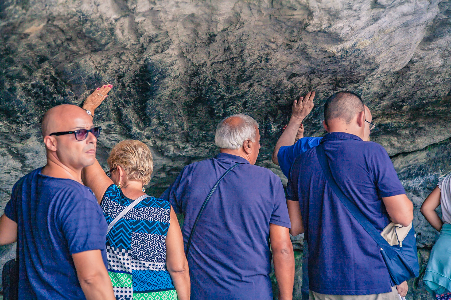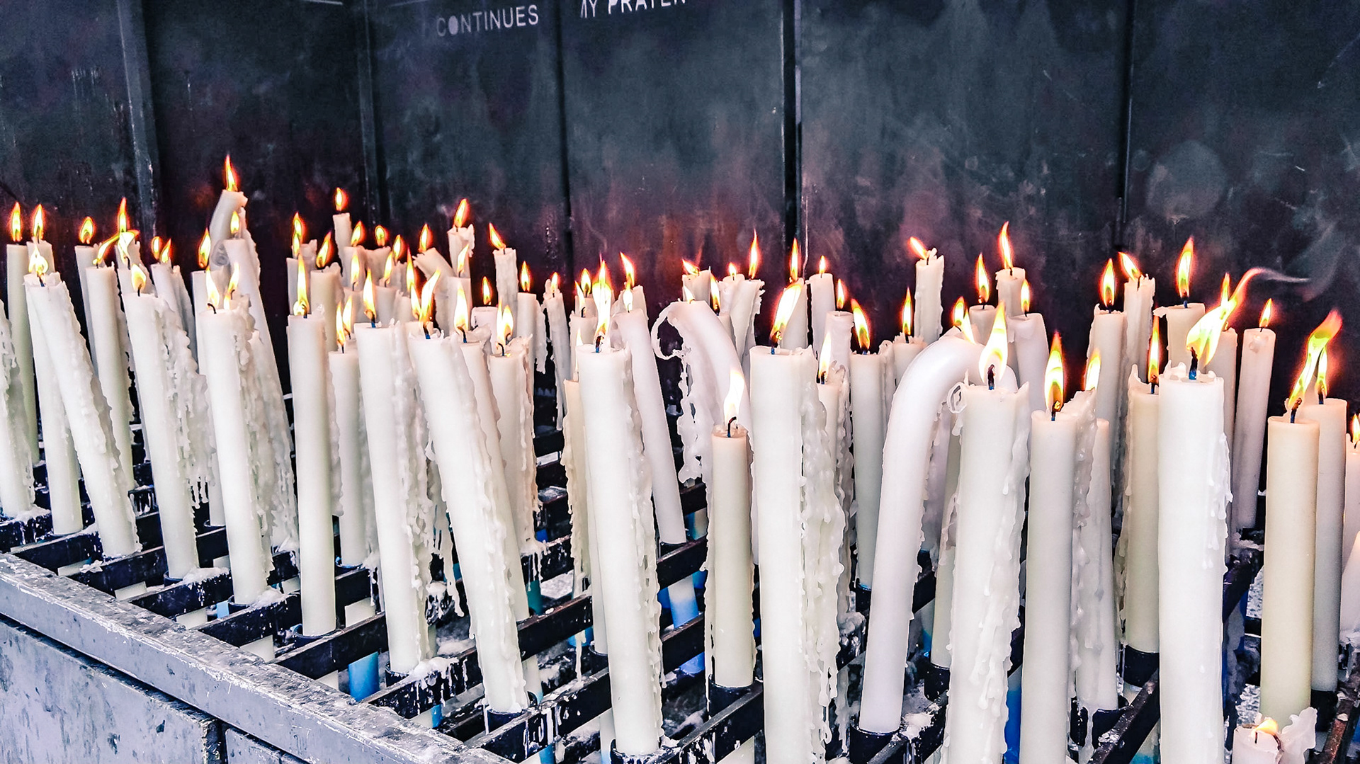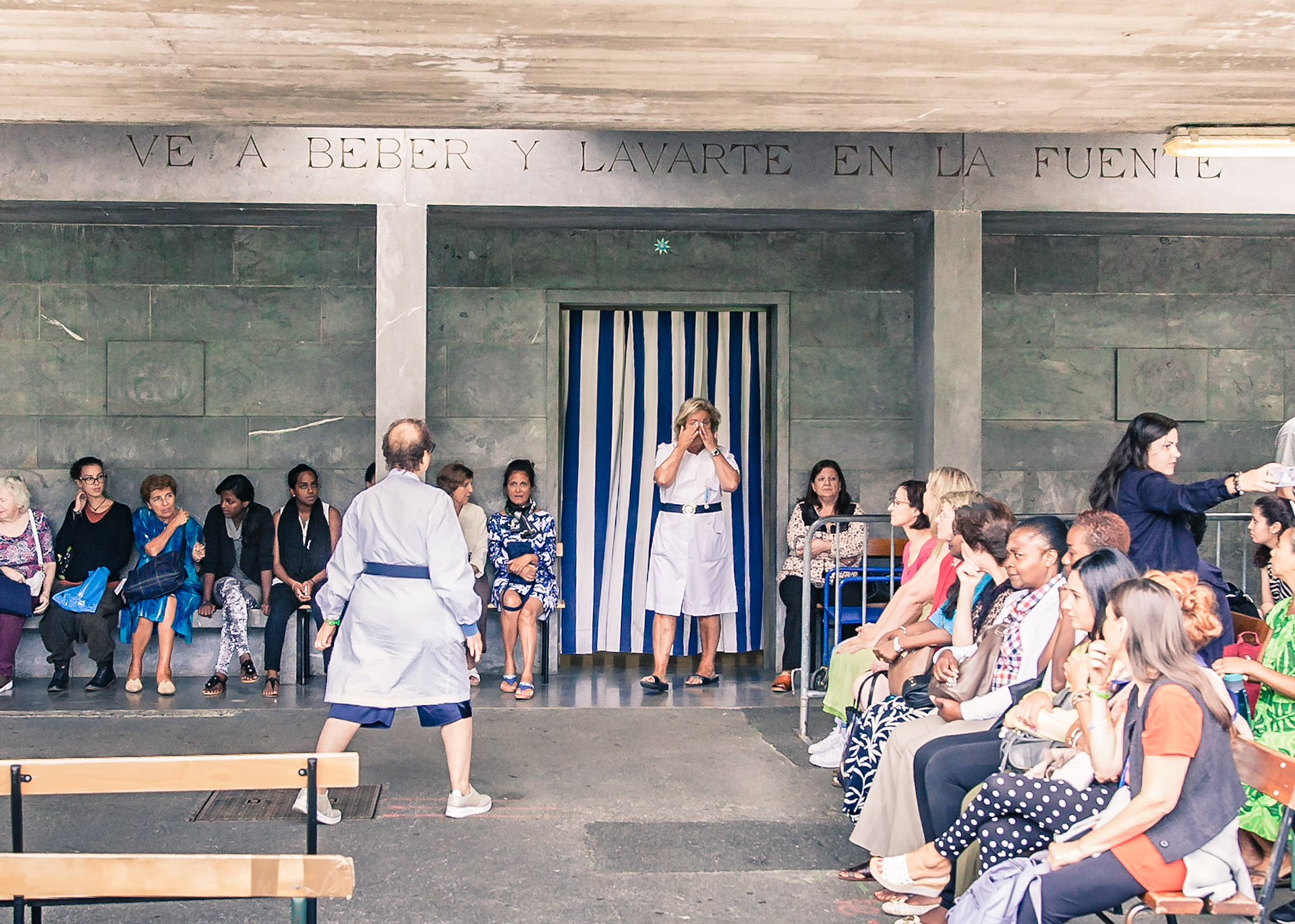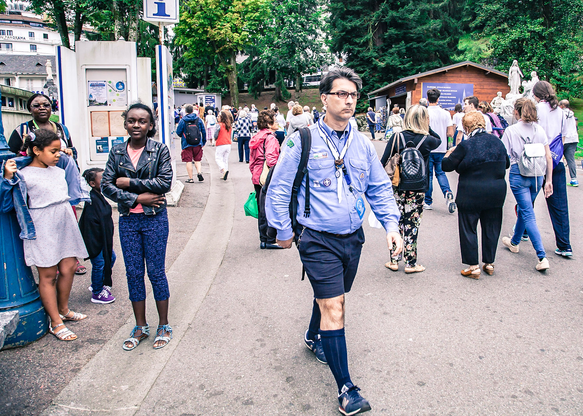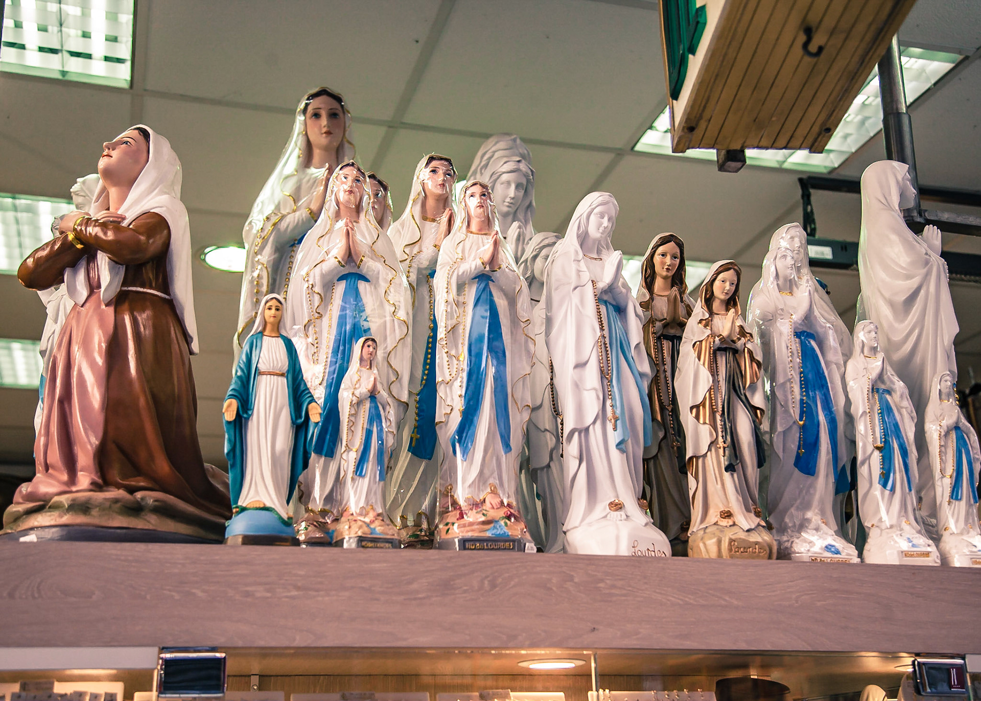A candid view of pilgrims at Lourdes, their devotion to the Catholic faith. The sick come from all over the world in hope of a cure. The atmosphere around the town and in the Grotto of Massabielle (Grotto of the Apparitions) is peaceful and where in 1858, the Virgin Mary is said to have appeared to a local woman. In the grotto, pilgrims can drink or bathe in water flowing from a spring.