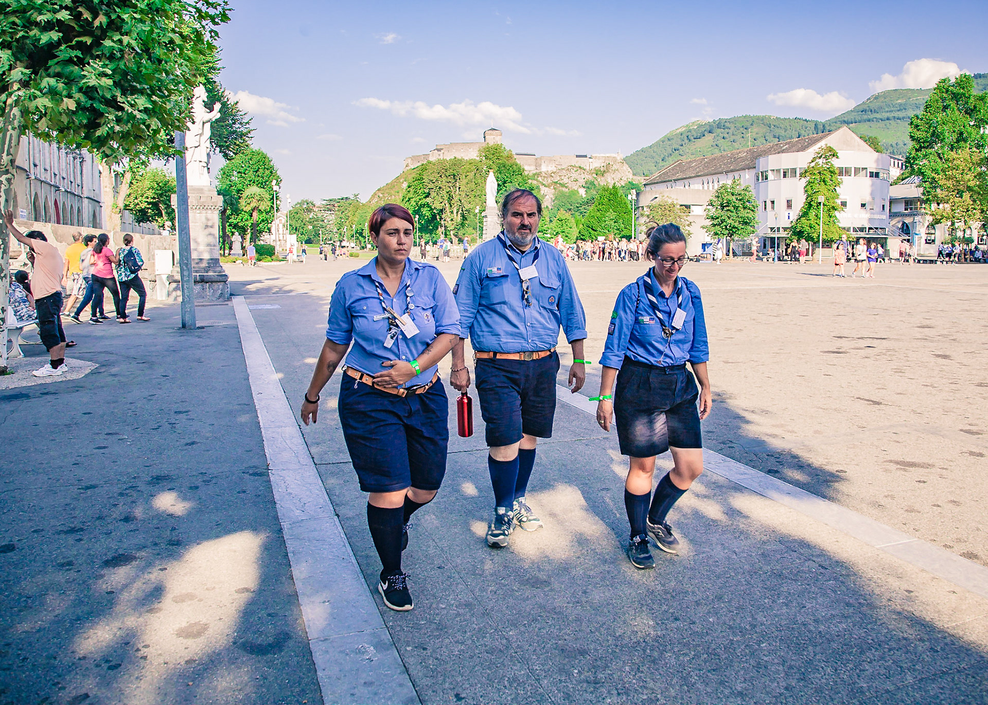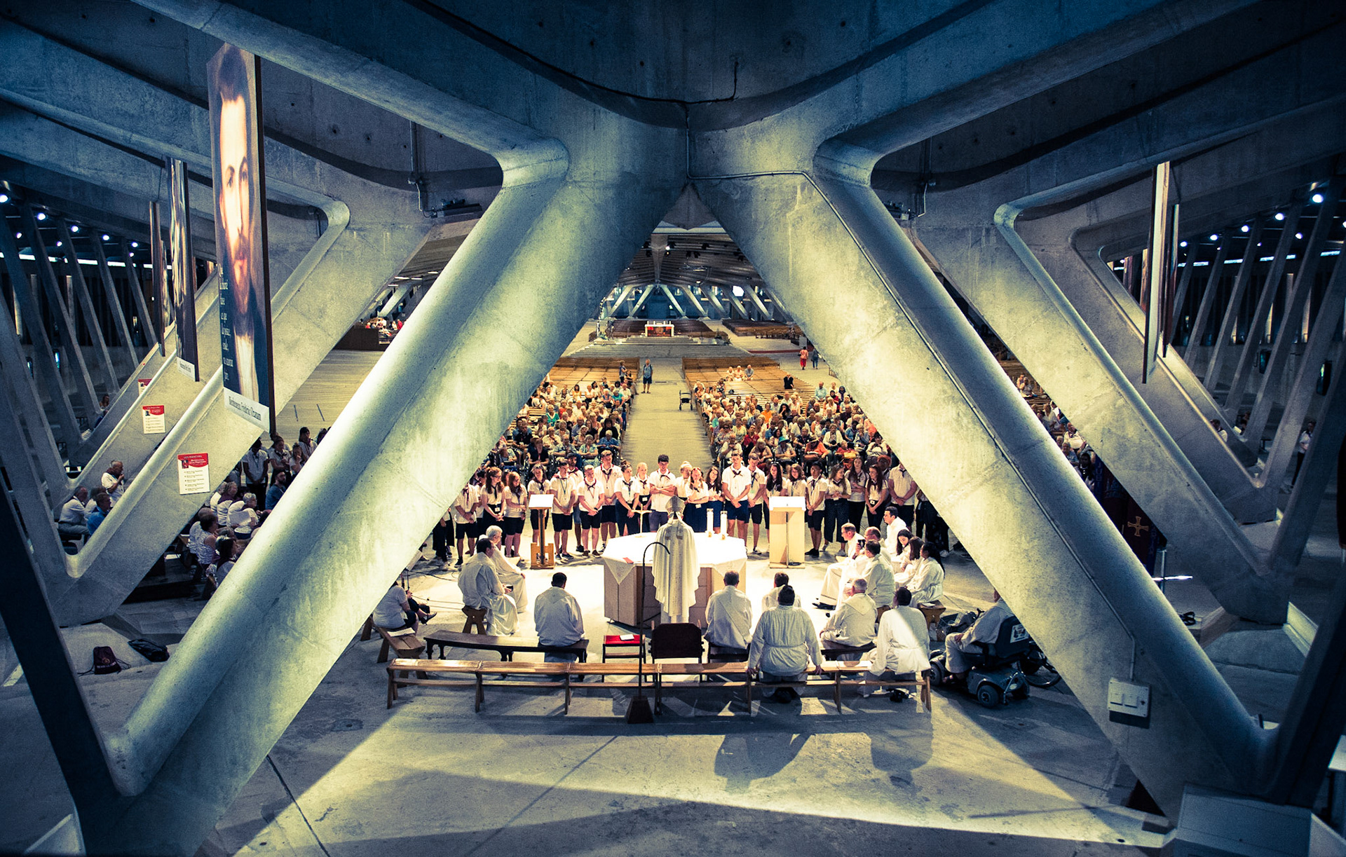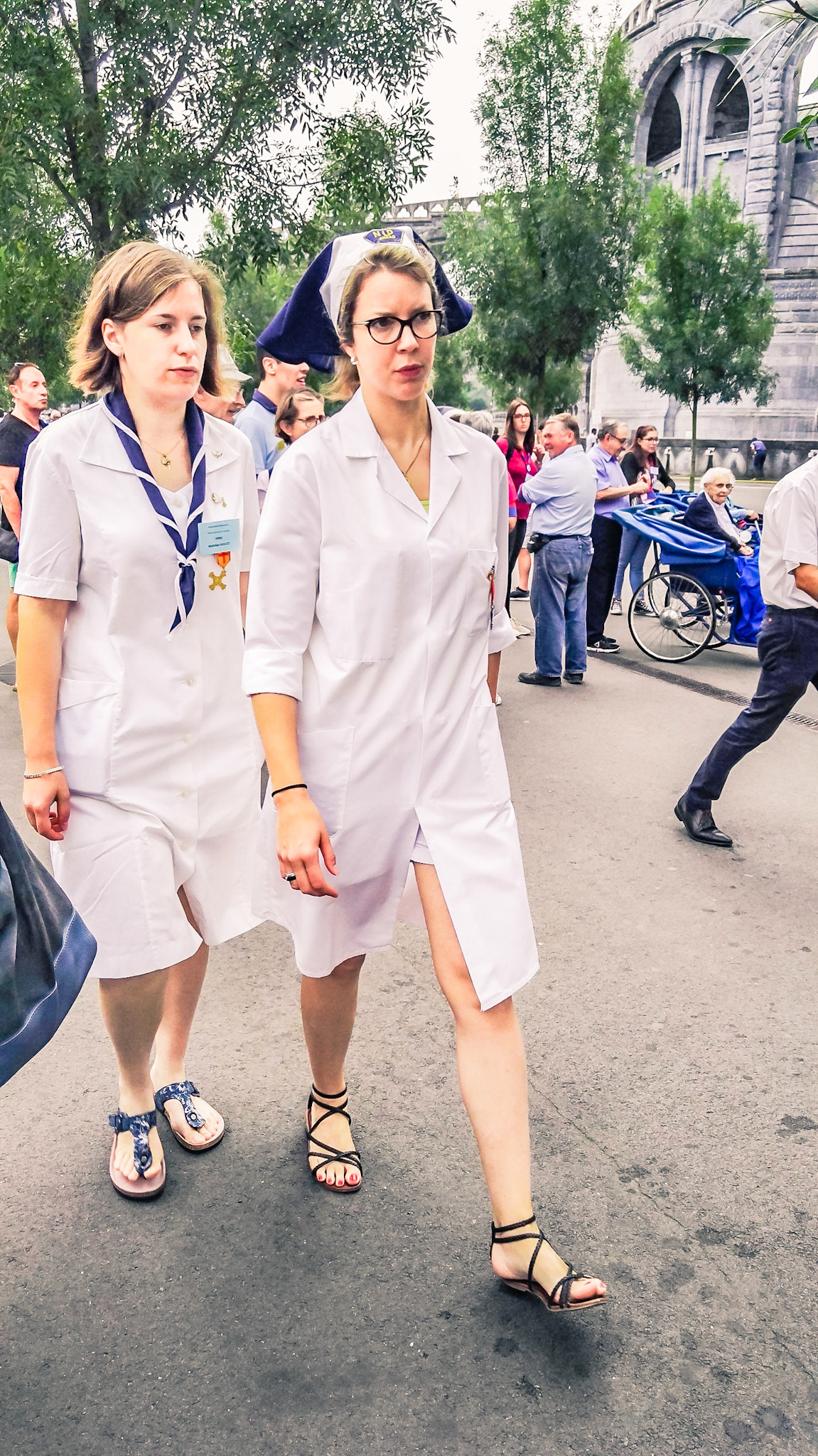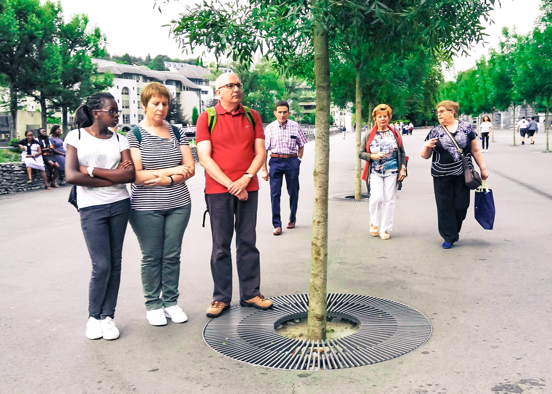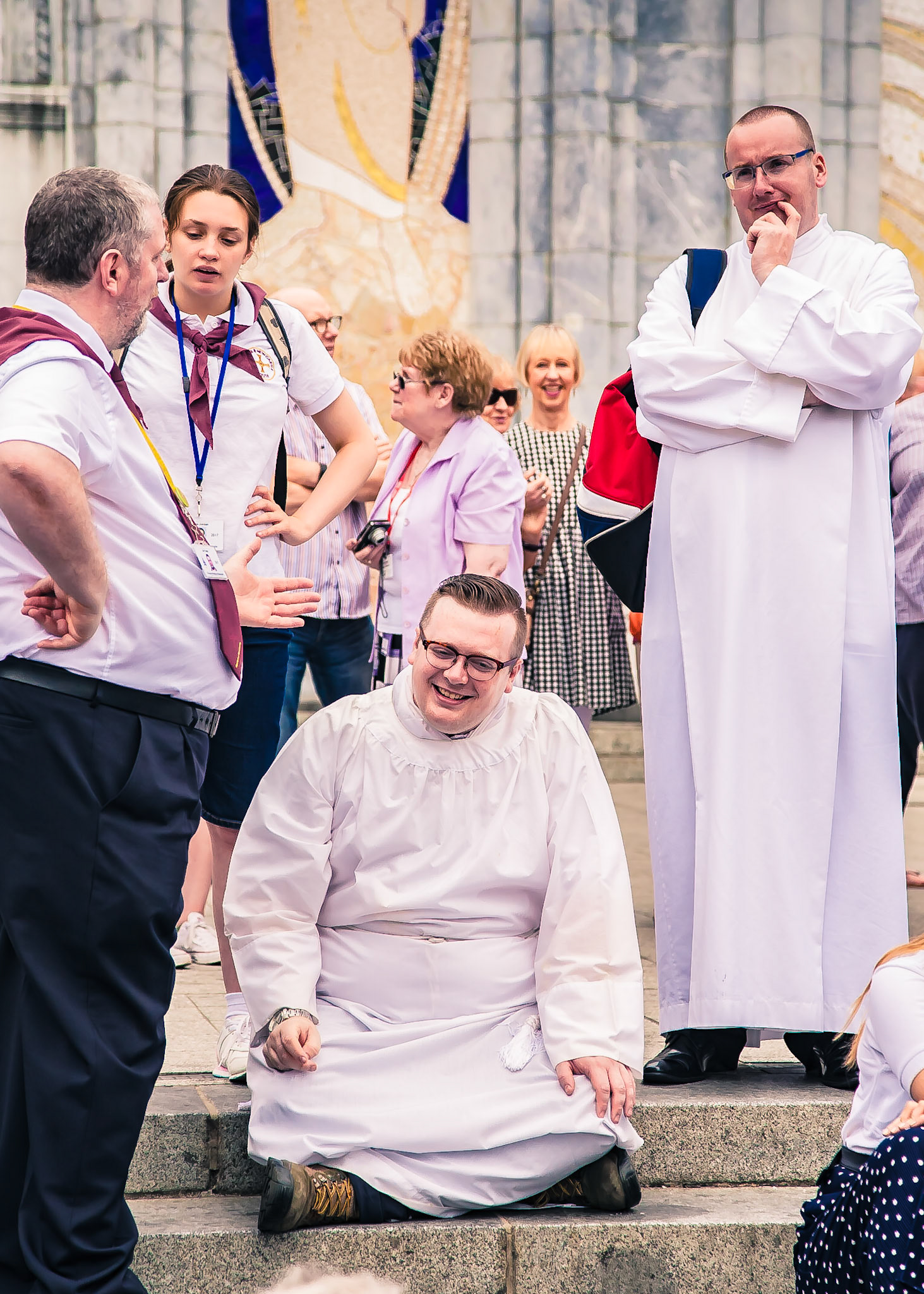 A candid view of pilgrims at Lourdes, their devotion to the Catholic faith. The sick come from all over the world in hope of a cure. The atmosphere around the town and in the Grotto of Massabielle (Grotto of the Apparitions) is peaceful and where in 1858, the Virgin Mary is said to have appeared to a local woman. In the grotto, pilgrims can drink or bathe in water flowing from a spring.