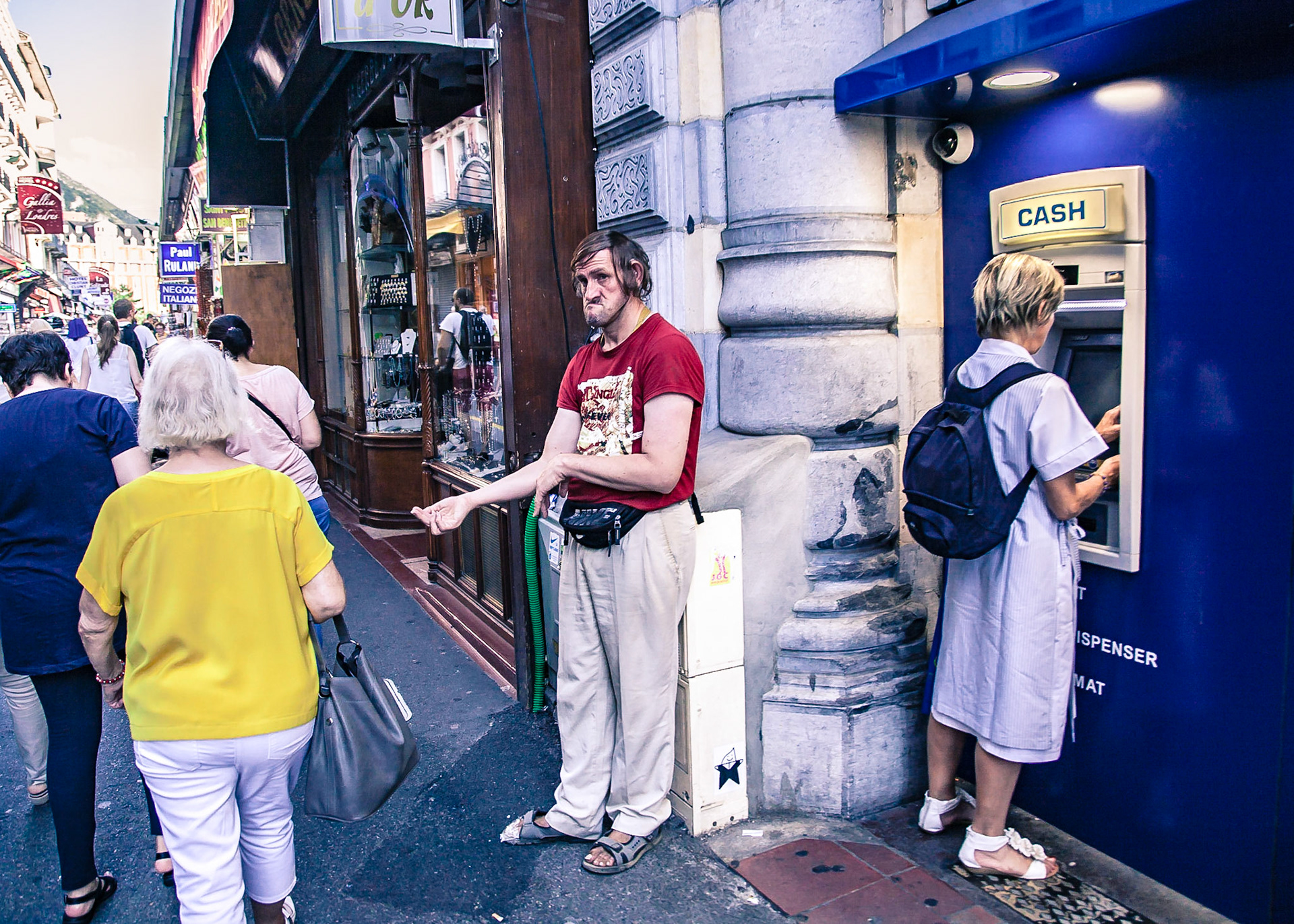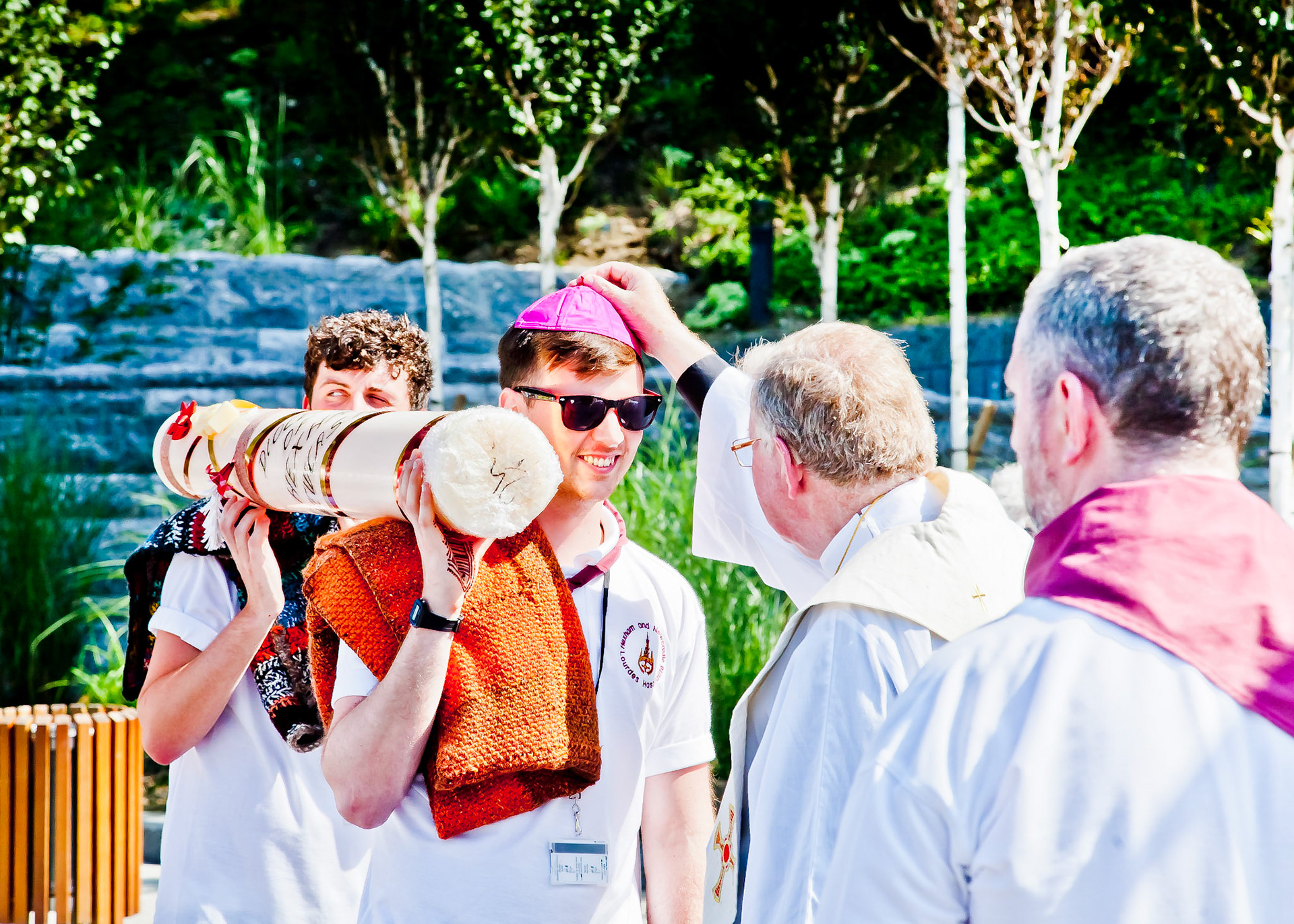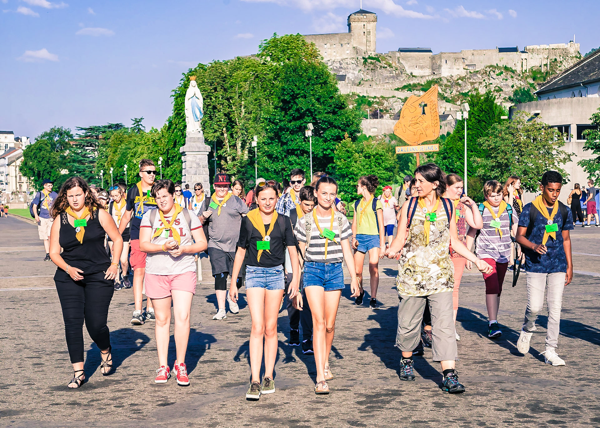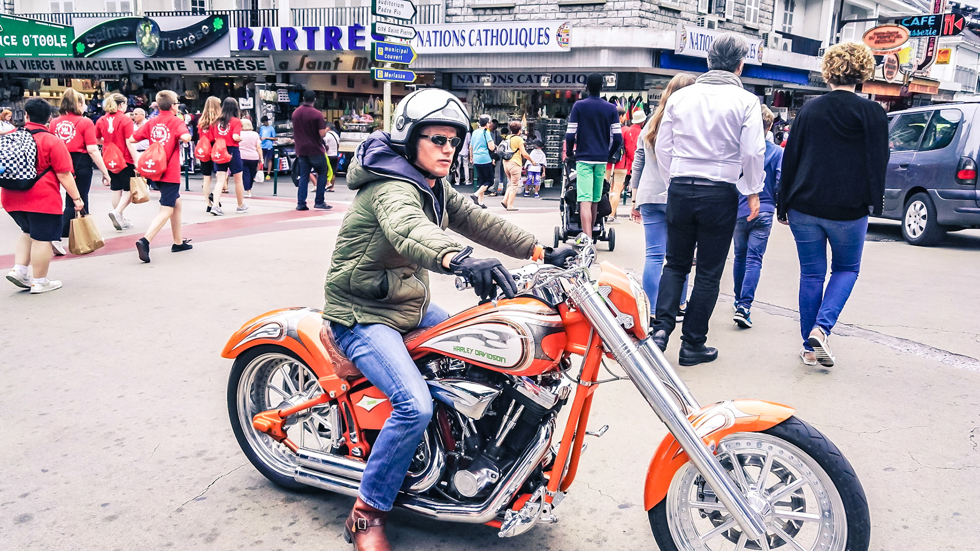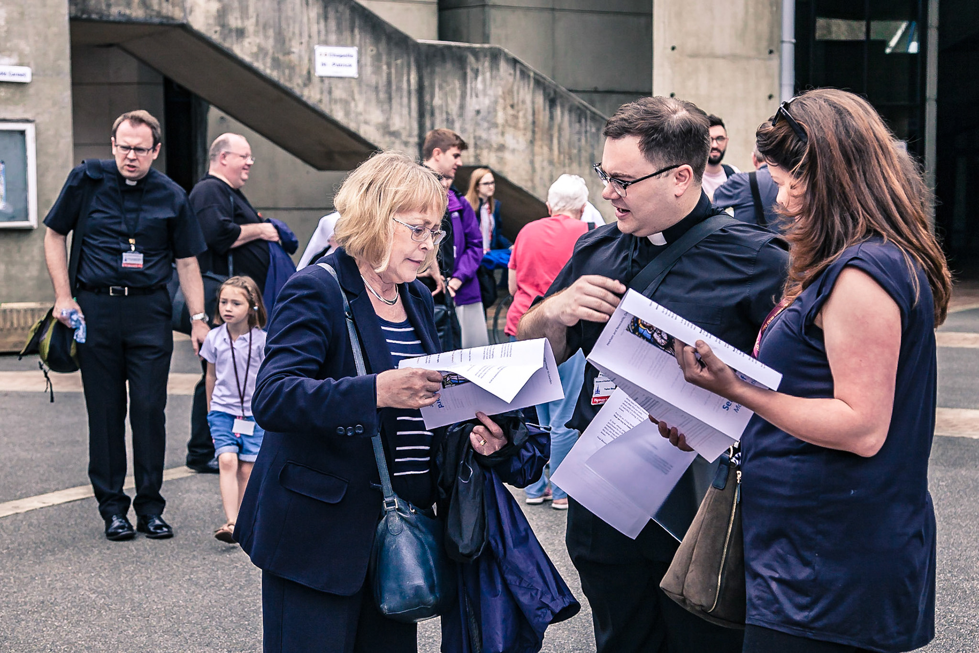 A candid view of pilgrims at Lourdes, their devotion to the Catholic faith. The sick come from all over the world in hope of a cure. The atmosphere around the town and in the Grotto of Massabielle (Grotto of the Apparitions) is peaceful and where in 1858, the Virgin Mary is said to have appeared to a local woman. In the grotto, pilgrims can drink or bathe in water flowing from a spring.